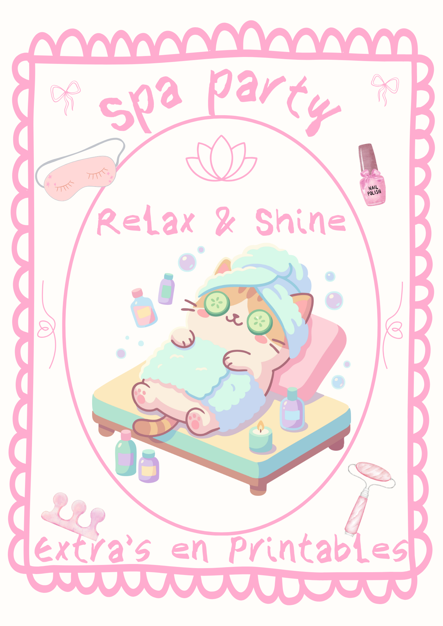 Ontdek onze complete spa party pakketten en feestelijke printables voor een ontspannen én stijlvolle t(w)een party.