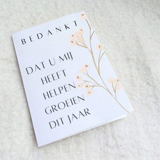 De kaartjes zijn eventueel te personaliseren. De kaart wordt inclusief envelop geleverd.
