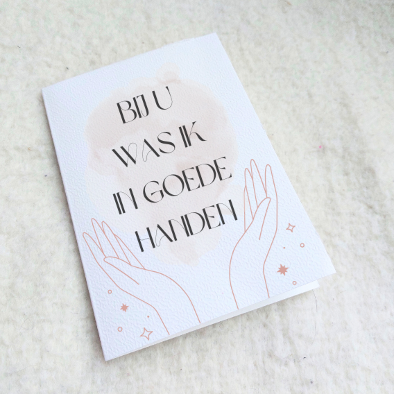 De kaartjes zijn eventueel te personaliseren. De kaart wordt inclusief envelop geleverd.