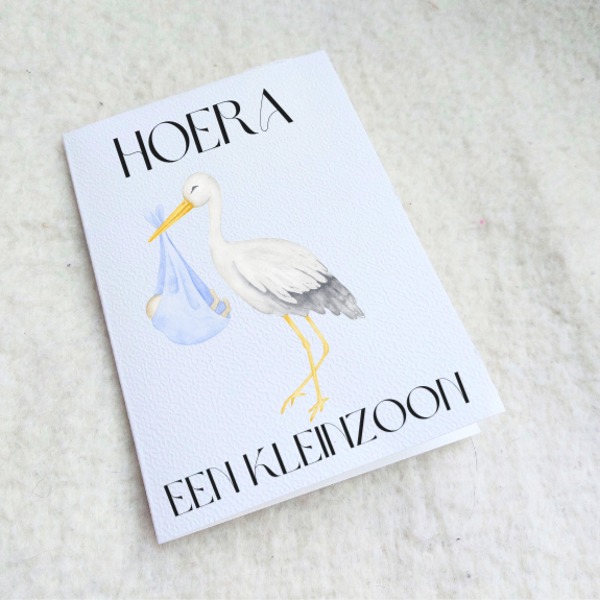 Een lief kaartje met een ooievaar.
