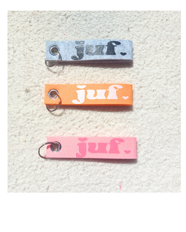Een stoere vilten sleutelhanger voor de juf of meester.
