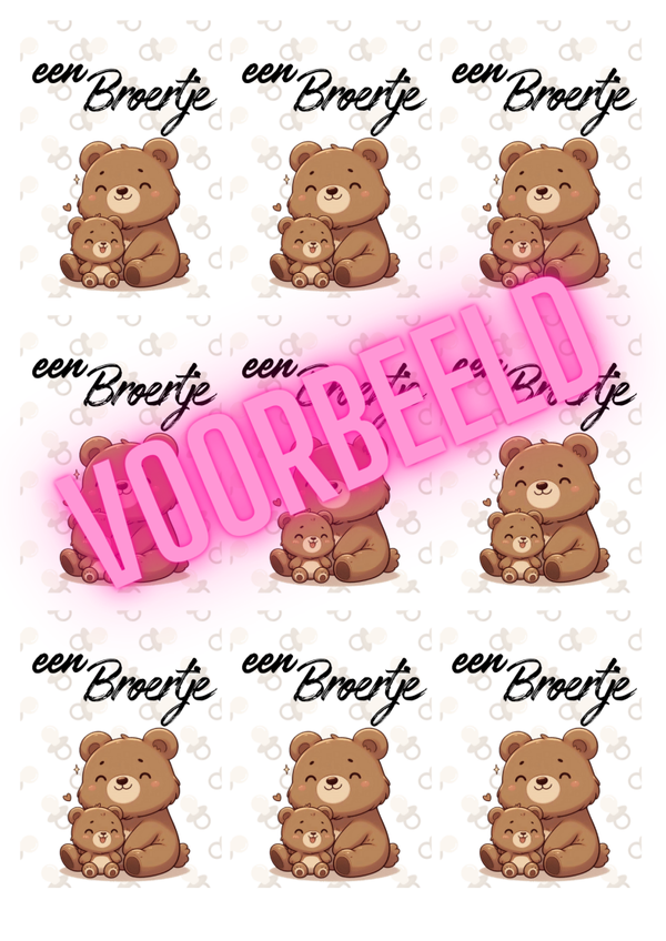 Dit lieve label met beertjes past perfect bij een leuke traktatie voor de geboorte van een klein broertje.