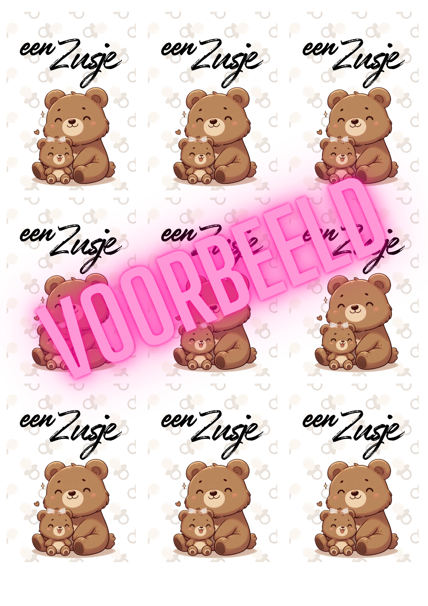 Dit lieve label met een beertjes past perfect bij een leuke traktatie voor de geboorte van een klein zusje.