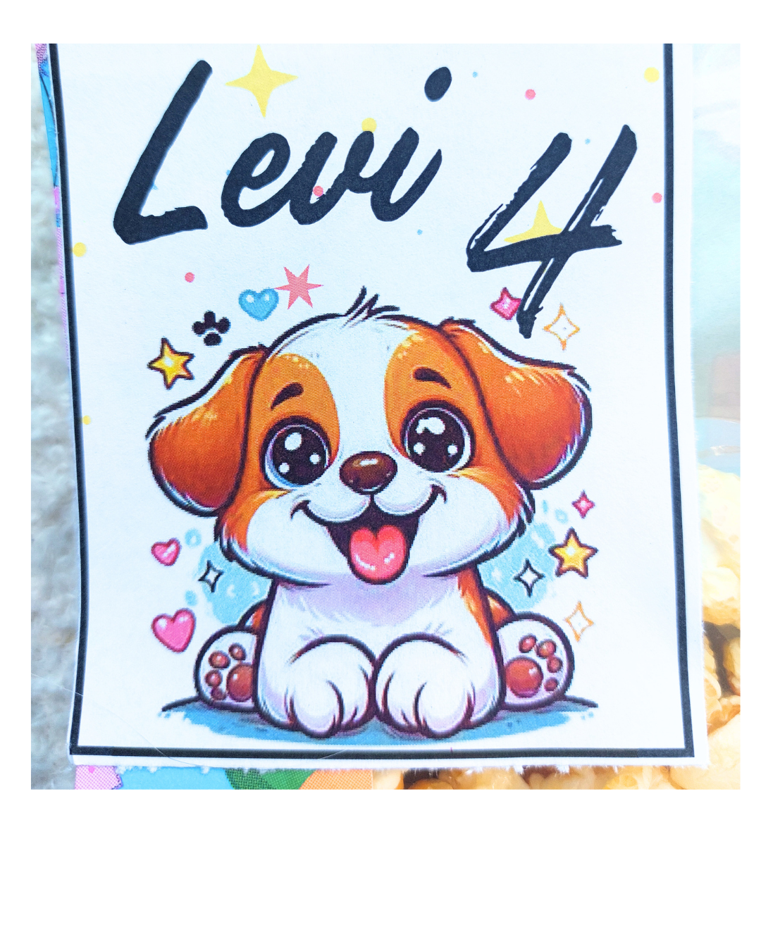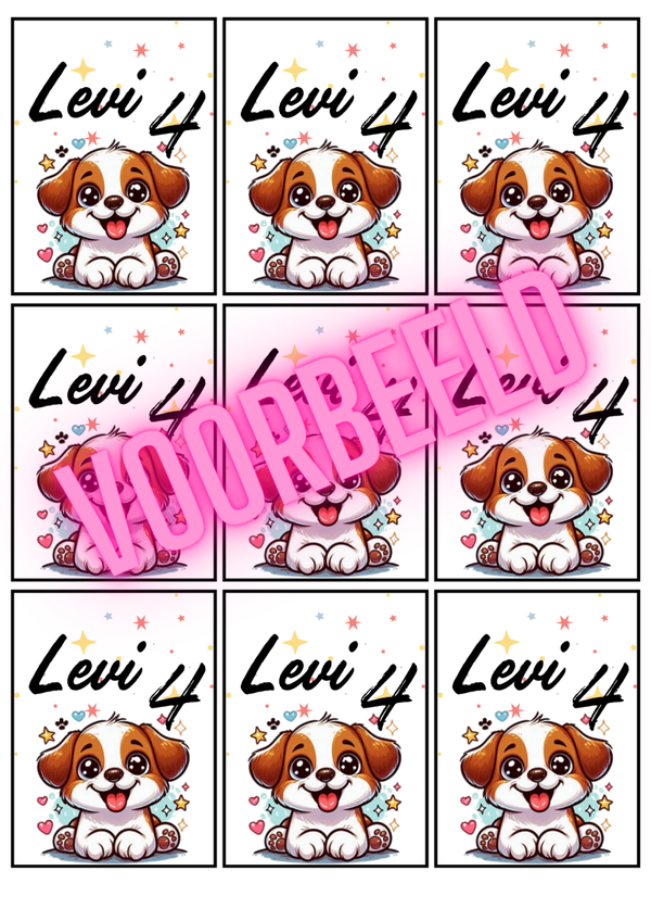 Dit lieve label met een hondje past perfect bij een leuke traktatie voor jouw kleintjes verjaardag.