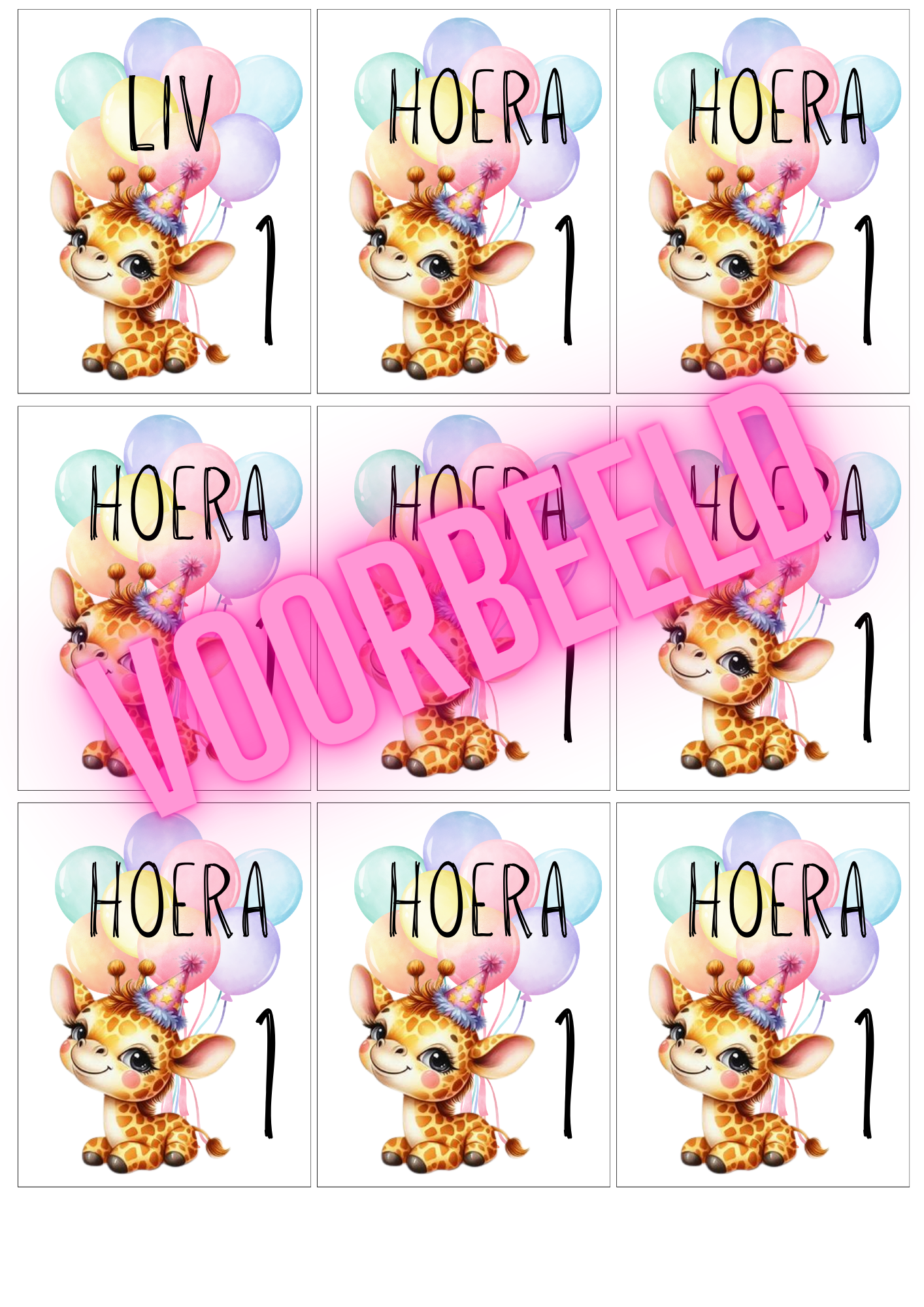 Dit lieve label met een Giraffe past perfect bij een leuke traktatie voor jouw kleintjes verjaardag.