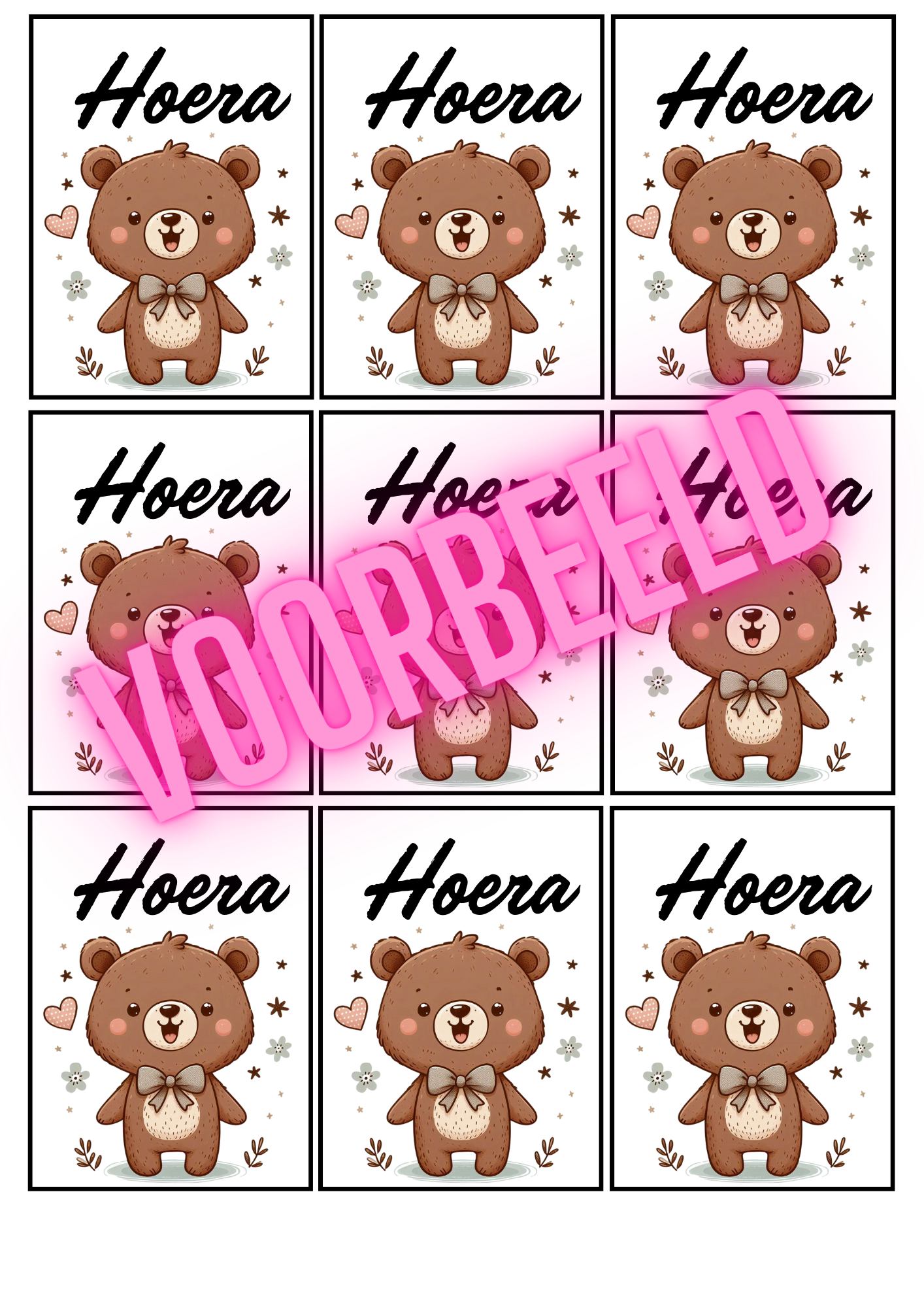 Dit lieve label met een beer past perfect bij een leuke traktatie voor jouw kleintjes verjaardag.