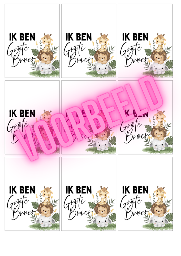 Dit lieve label met safari diertjes past perfect bij een leuke traktatie voor de geboorte van een klein broertje.