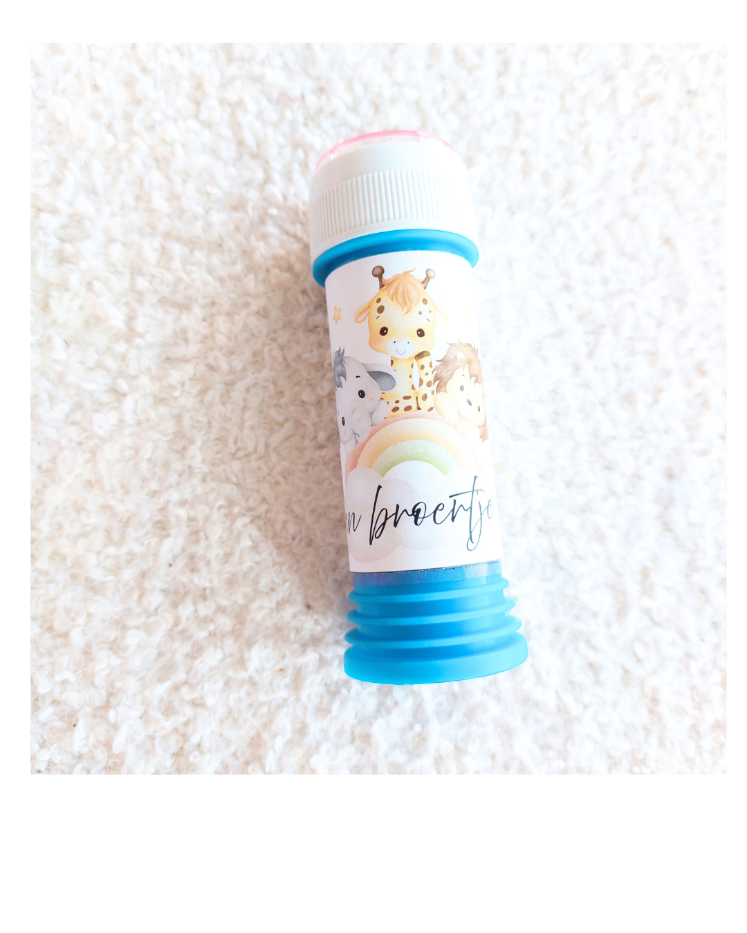 Een leuke bellenblaas wikkel om de geboorte aan te kondigen van een lief klein broertje.