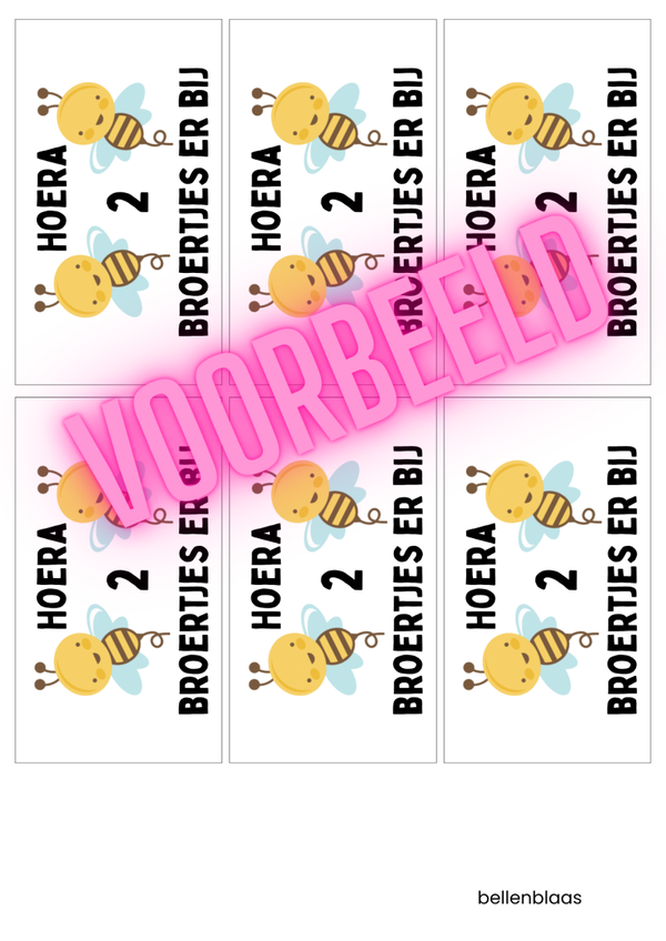Een leuke bellenblaas wikkel om de geboorte aan te kondigen van 2 lieve kleine broertjes.