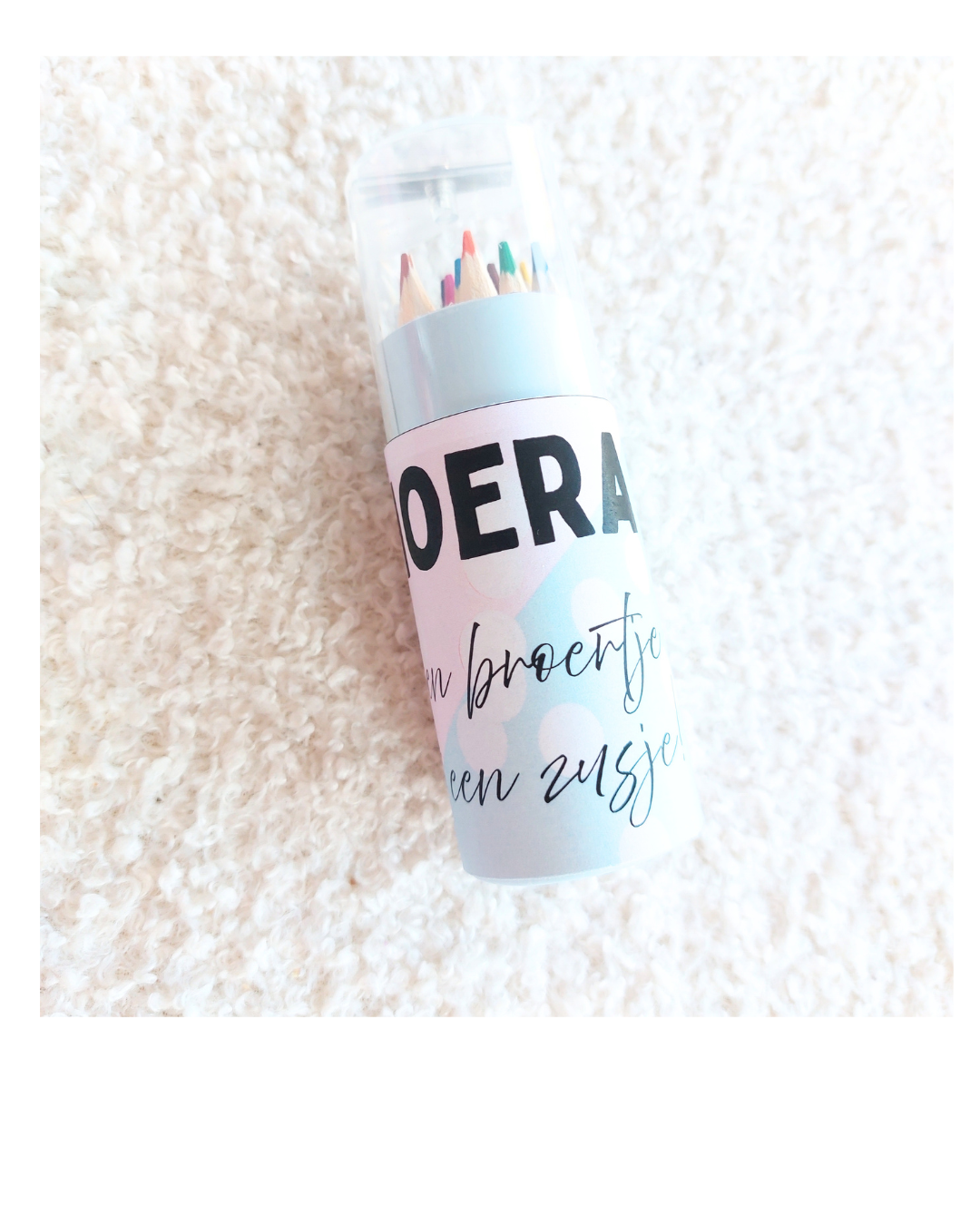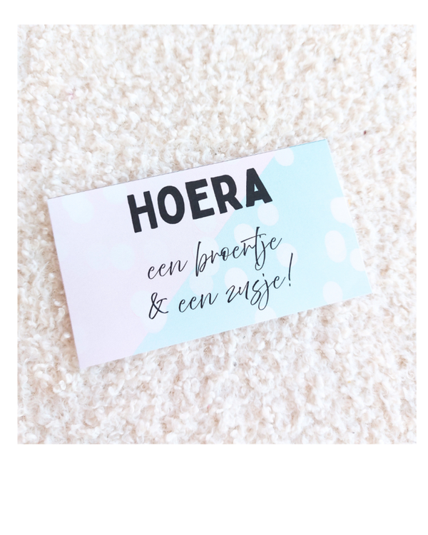 Een leuke kleurtjes wikkel om de geboorte aan te kondigen van een lief klein broertje EN een zusje.