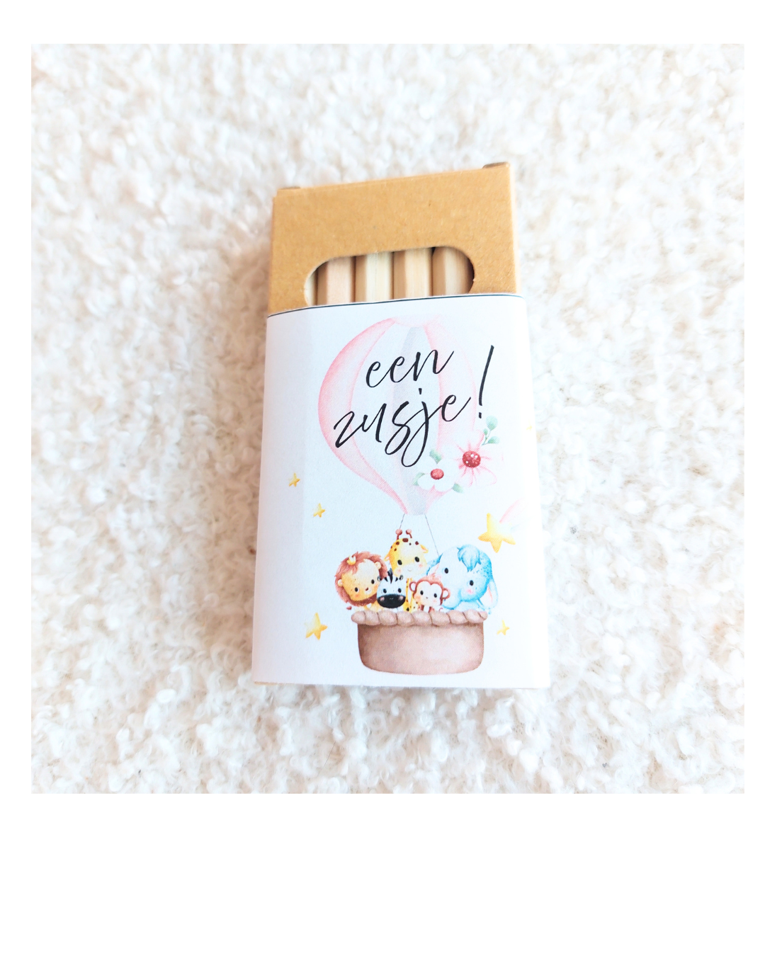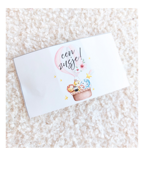 Een leuke kleurtjes wikkel om de geboorte aan te kondigen van een lief klein zusje.