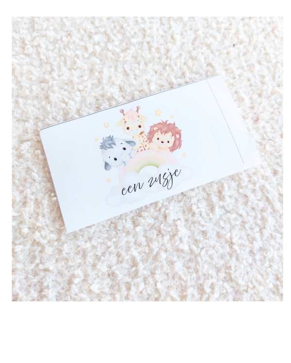 Een leuke kleurtjes wikkel om de geboorte aan te kondigen van een lief klein zusje.