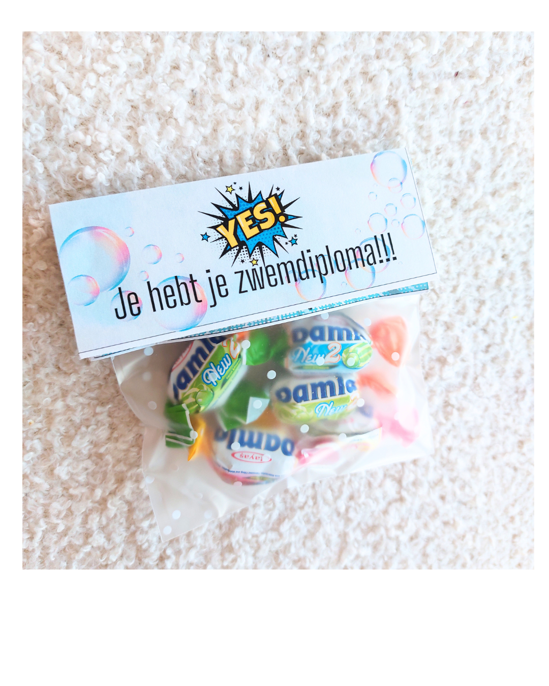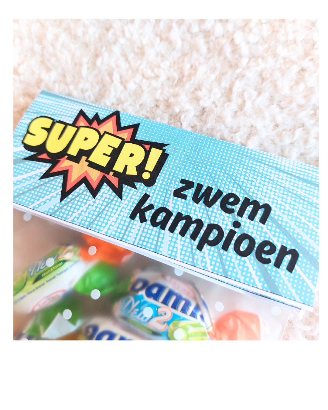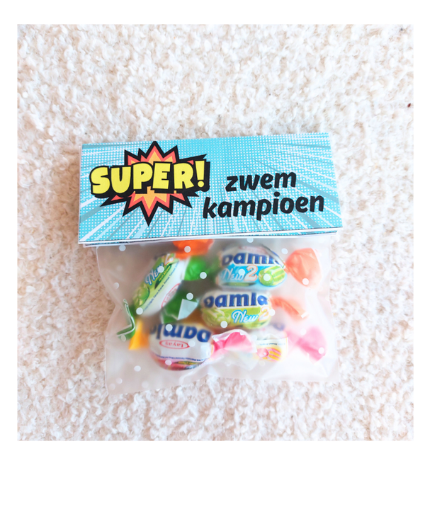 Dit leuke etiketzakje is voor de echte zwemkanjers!