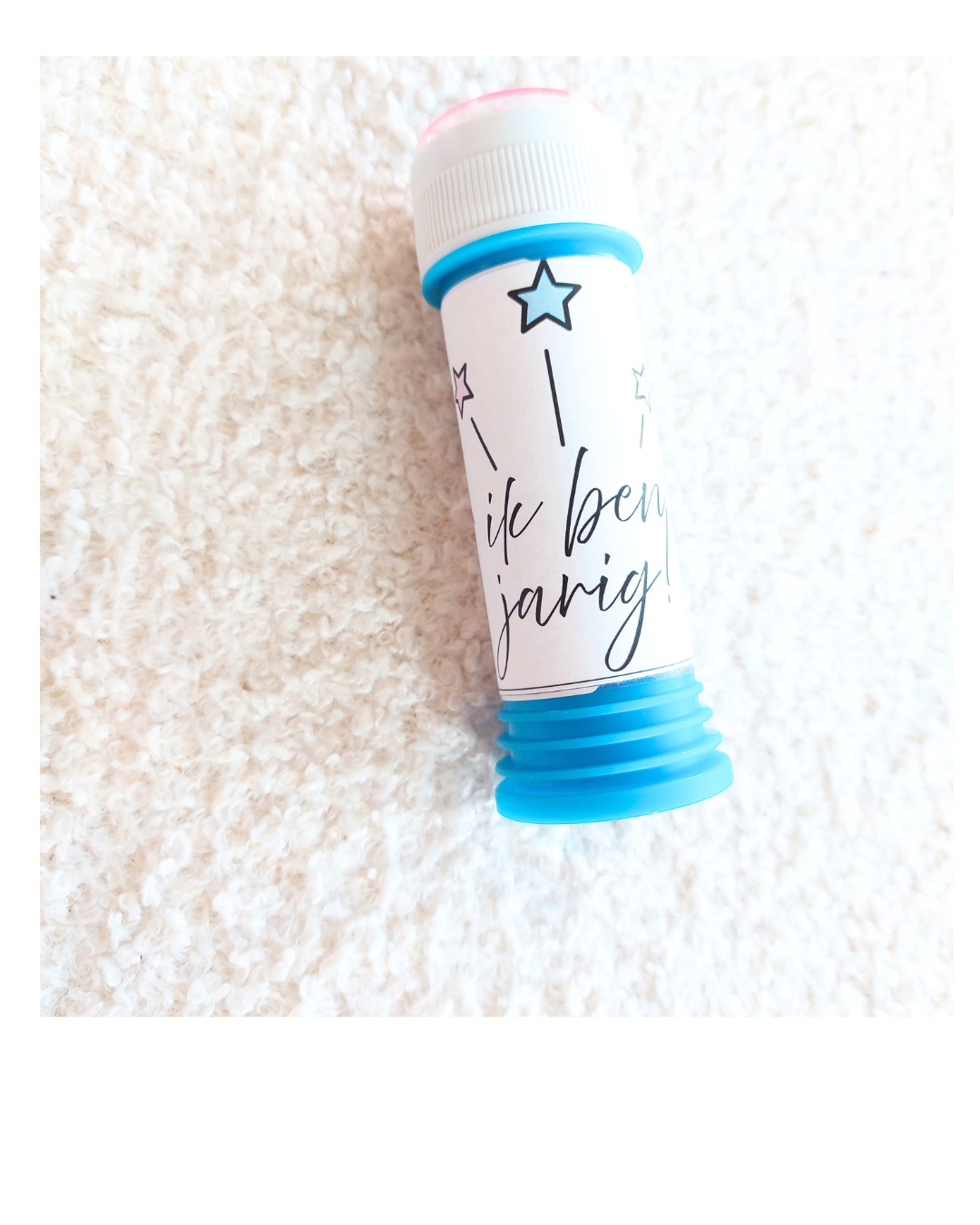 Kies voor een kleurtjeskoker, -doosje of een bellenblaas in combinatie met een doosje rozijntjes en een gekleurde ballon, feestelijk vepakt!